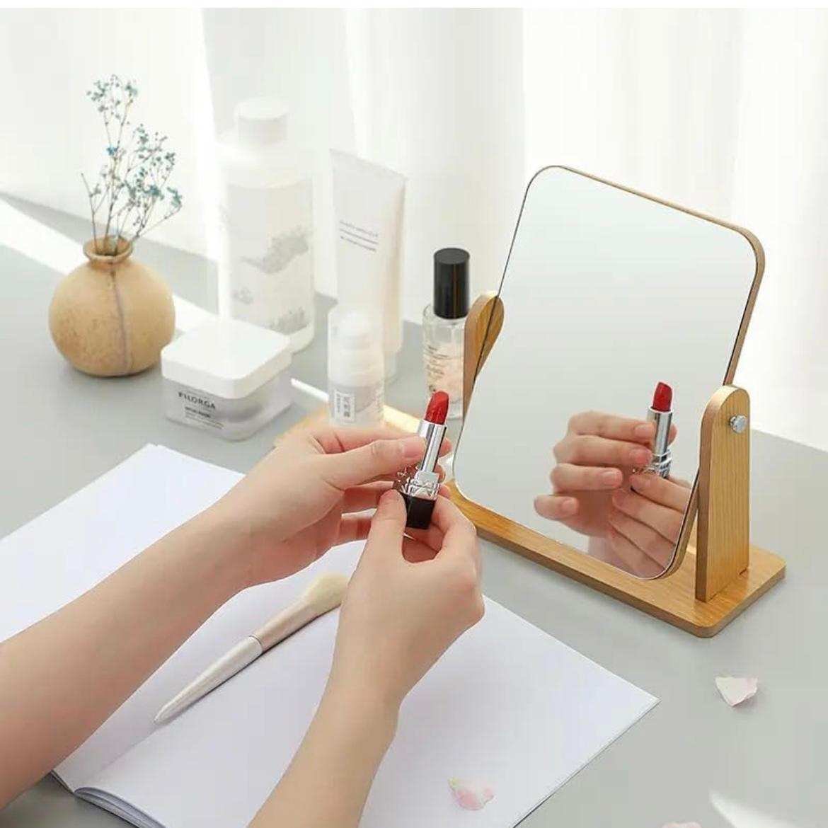 - Stable Base Construction – The wooden stand provides a non-wobbly foundation, keeping the mirror secure while adjusting angles or performing precise tasks.